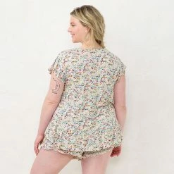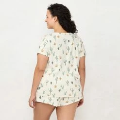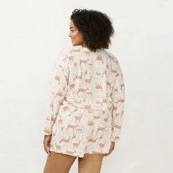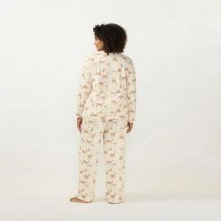 Plus Size LC Lauren Conrad Long Sleeve Henley Pajama Top & Pajama Pants Sleep Set Pink Winter Houses