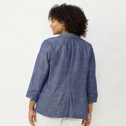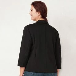 Plus Size LC Lauren Conrad Ruched-Sleeve Shawl Collar Blazer Navy Dots