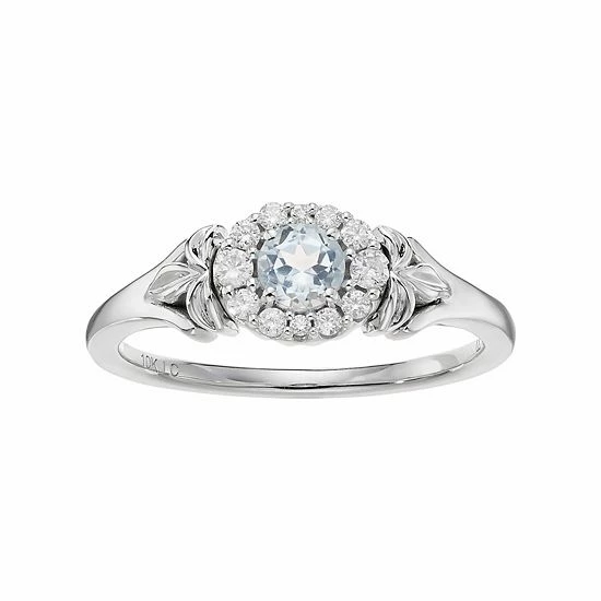 Designed with a beautiful floral motif, this blue topaz and diamond ring offers enchanting beauty.