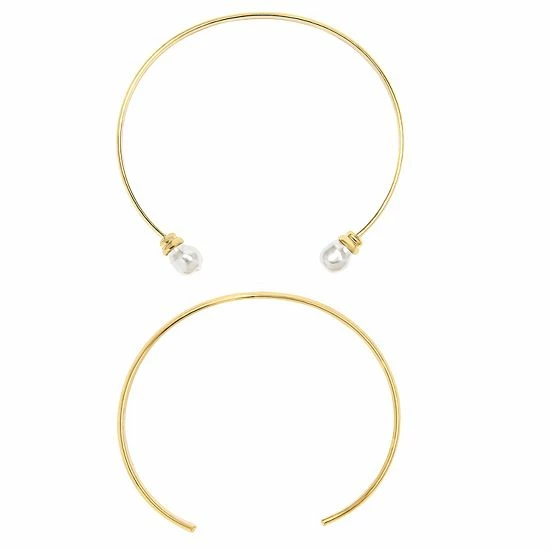 Look your best with this LC Lauren Conrad 2 Pack Organic Pearl Ends Engraved Cuff Bracelet Set.