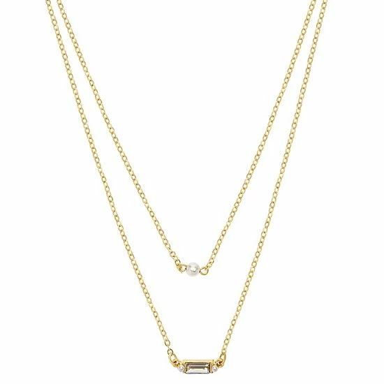 Double the beautiy of your ensemble with this LC Lauren Conrad Gold Tone 2 Row Clear Baguette and Simulated Pearl Necklace.