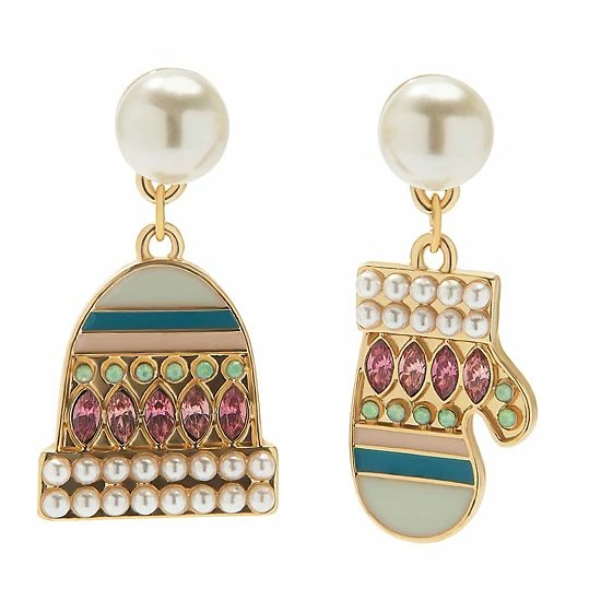 Add a little cheer to your cold weather wardrobe with these adorable gold tone simulated pearl and crystal-encrusted winter hat and glove drop earrings from LC Lauren Conrad.