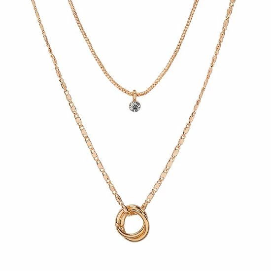Accessorize with elegant style when you wear this beautiful LC Lauren Conrad gold tone layered necklace with a small cubic zirconia and interlocking circle pendants.