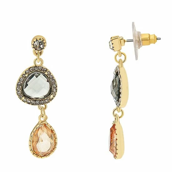 Finish off your look with a touch of sparkle in these peach and gray crystal-studded gold tone drop earrings from LC Lauren Conrad.