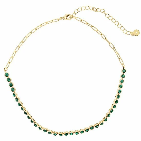 Add a pop of color to any ensemble with this eye-catching gold tone, green crystal choker length tennis necklace from LC Lauren Conrad.