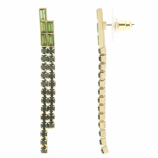 Add a pop of color to your look with these gold tone green rhinestone double-row drop earrings from LC Lauren Conrad.