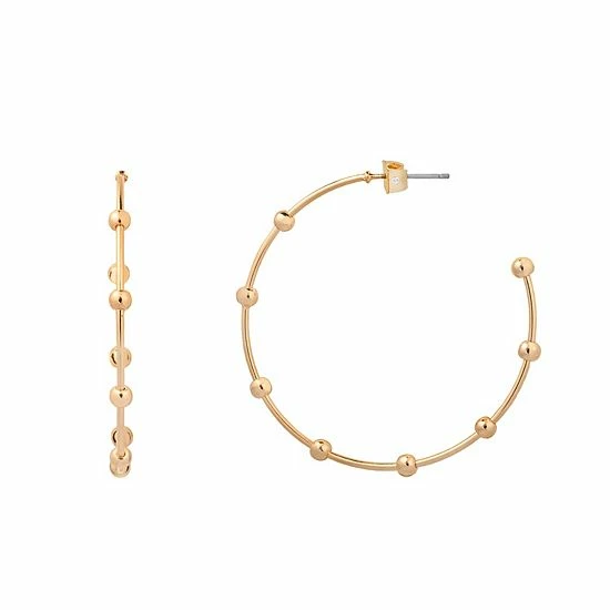 Add texture to your wardrobe with these lovely LC Lauren Conrad Rose Gold Tone Large Hoops with Clean Metal Balls Earrings.
