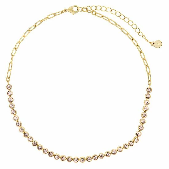 Add a touch of sweetness to your jewelry collection with this gold tone pink crystal choker-length tennis necklace from LC Lauren Conrad.