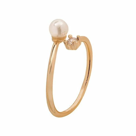 This LC Lauren Conrad Gold Tone Simulated Pearl and Crystal Nickel Free Open Ring will be a refreshing twist to your ring collection.