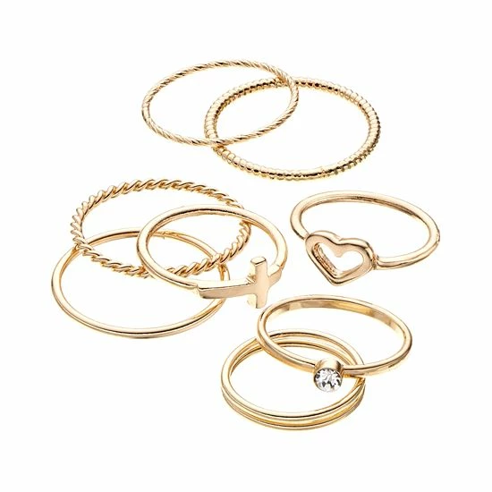 Charming style is in your hands with this LC Lauren Conrad heart, cross and textured ring set adorning your fingers.