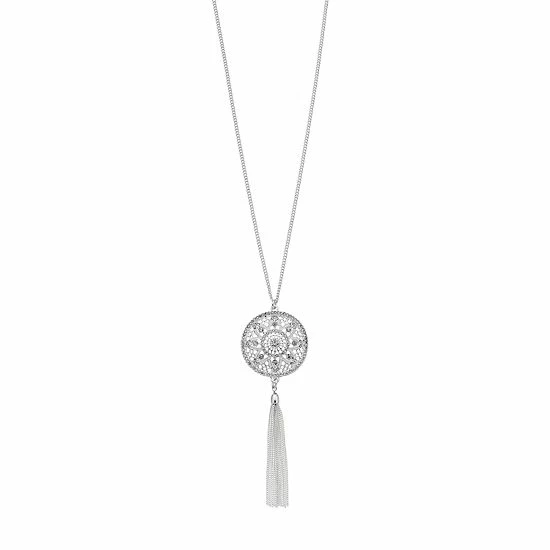 Add some sparkle to any look with this filigree disc and tassel long pendant necklace from LC Lauren Conrad.