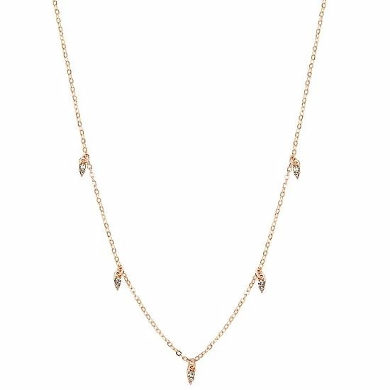 With its delicate rose gold tone plating and sparkling crystal charms, this necklace from LC Lauren Conrad is the perfect way to add a touch of sparkle to any ensemble.