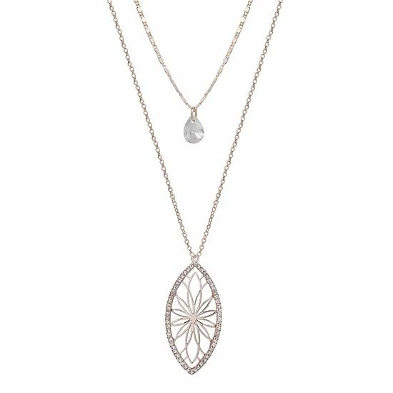 This beautiful rose gold tone floral double drop necklace is the perfect way to finish any outfit.