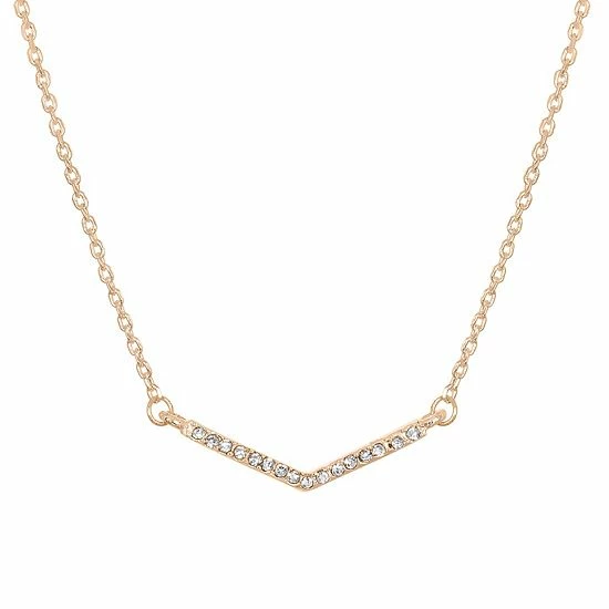 This LC Lauren Conrad Rose Gold Tone Wide V Nickel Free Pendant Necklace is versatile for pretty day or nighttime looks.
