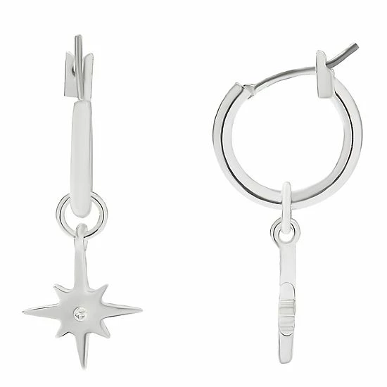 Turn heads with these LC Lauren Conrad Silver Star Drop Hoop Earrings.