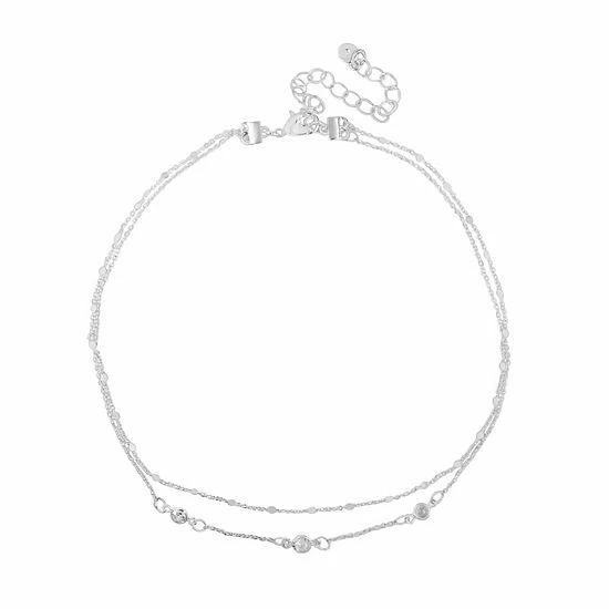 This gorgeous silver tone cubic zirconia 2-row choker necklace is the perfect way to finish any outfit.