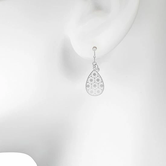 These LC Lauren Conrad Silver Tone Filigree Simulated Crystal Nickel Free Teardrop Earrings have a pretty pattern that will turn heads.