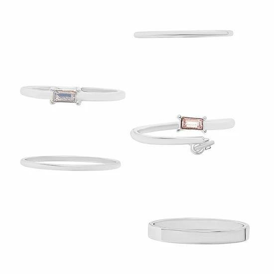 Be set up for fashion success with this LC Lauren Conrad Silver Tone Pink Baguettes Multi Ring Set. Check out all of our jewelry at Kohls.com.