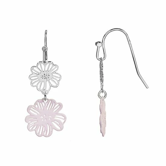 Accent your look with these delightful silver tone openwork floral earrings from LC Lauren Conrad.