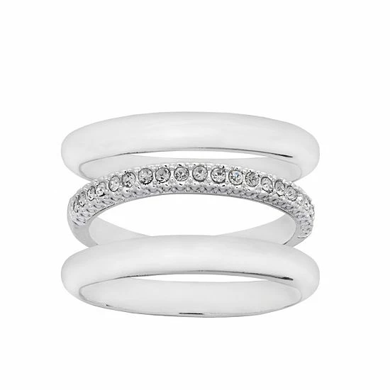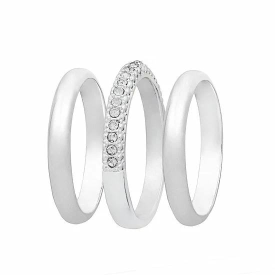 This gorgeous silver tone stackable ring set is a must-add to your fine jewelry collection.