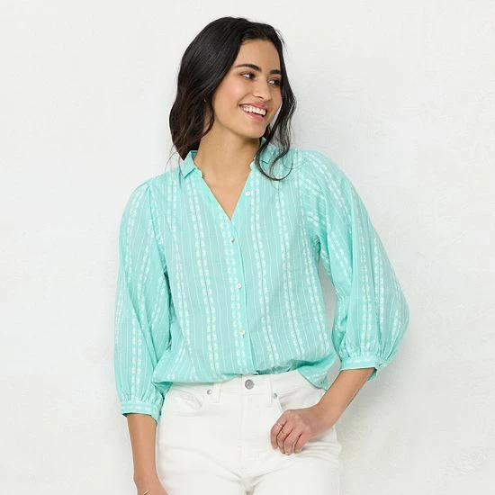 Mix it up. Reinvent any outfit with this petites’ puff sleeve button-down top from LC Lauren Conrad.