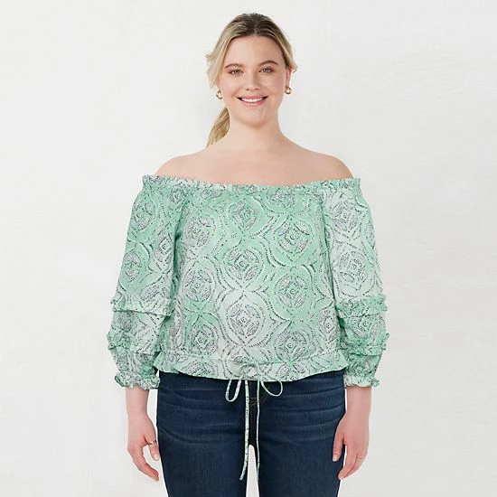Turn on the charm in this women’s LC Lauren Conrad cold-shoulder top.