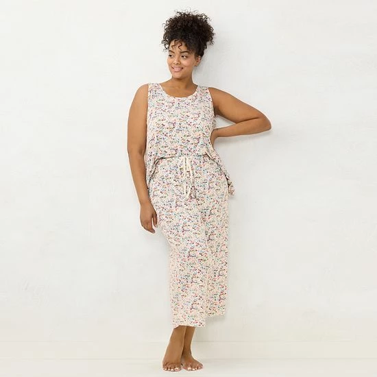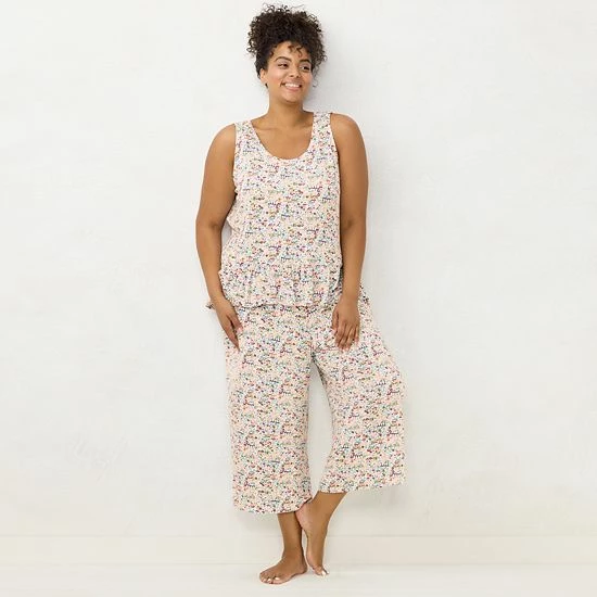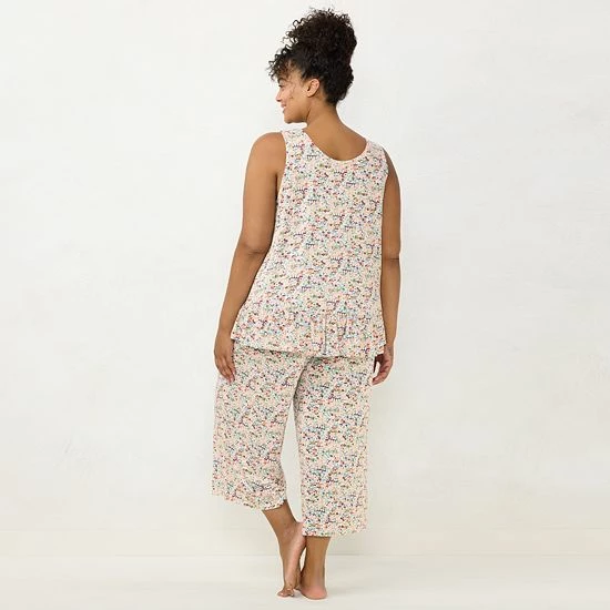 Plus Size LC Lauren Conrad Peplum Pajama Tank & Culotte Pajama Pants Sleep Set Ivory Scene