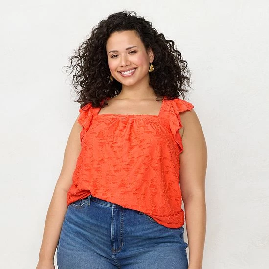 Ruffle details and swing styling make this women’s LC Lauren Conrad top a feminine favorite, perfect for warm-weather.