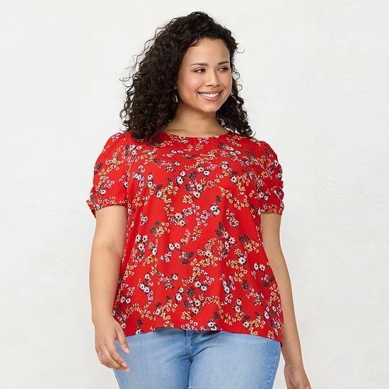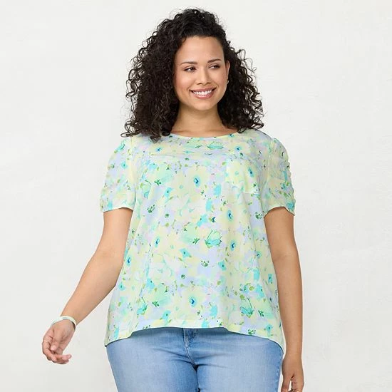 Enjoy a unique spring look with this women’s rumpled short sleeve tee from LC Lauren Conrad.