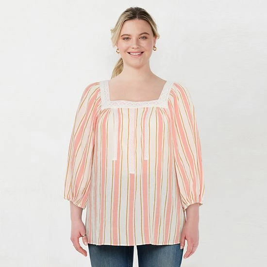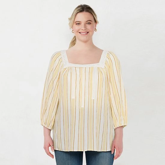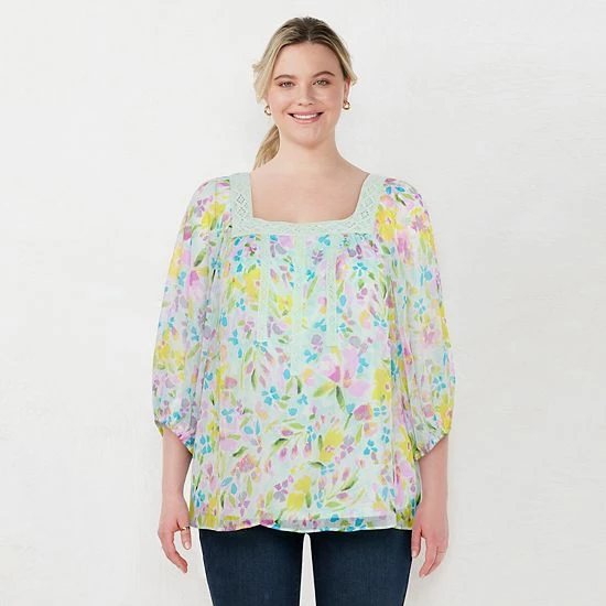 You’ll love this boho women’s peasant top with crochet trim from LC Lauren Conrad.