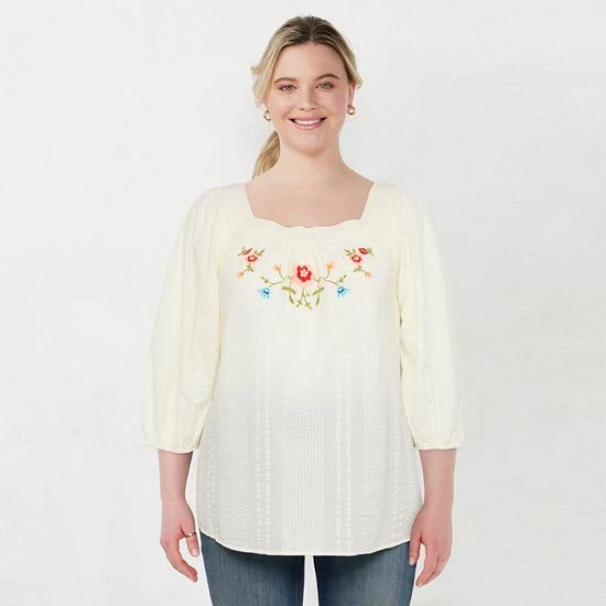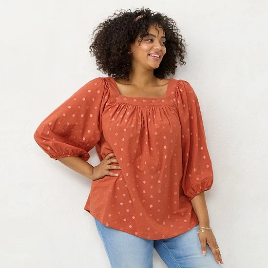 Start your day off right with this women’s peasant top from LC Lauren Conrad.