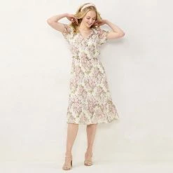 Women’s LC Lauren Conrad Flutter Sleeve Faux-Wrap Dress Brimfield Bouquet
