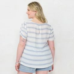 Plus Size LC Lauren Conrad Rumpled Short Sleeve Tee Red Sprigs