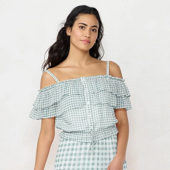 Enjoy cheerful summer style with this women’s off-the-shoulder top from LC Lauren Conrad.