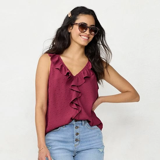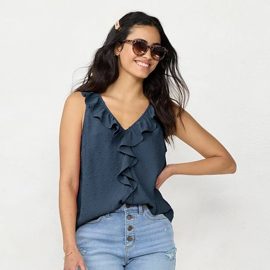 Delightful summer style is here with this women’s cascading ruffle tank from LC Lauren Conrad.