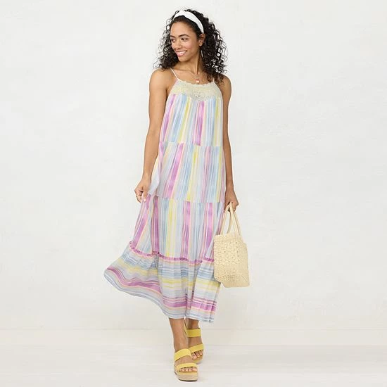 Flowing spring style is here with this women’s maxi dress with crochet trim from LC Lauren Conrad.