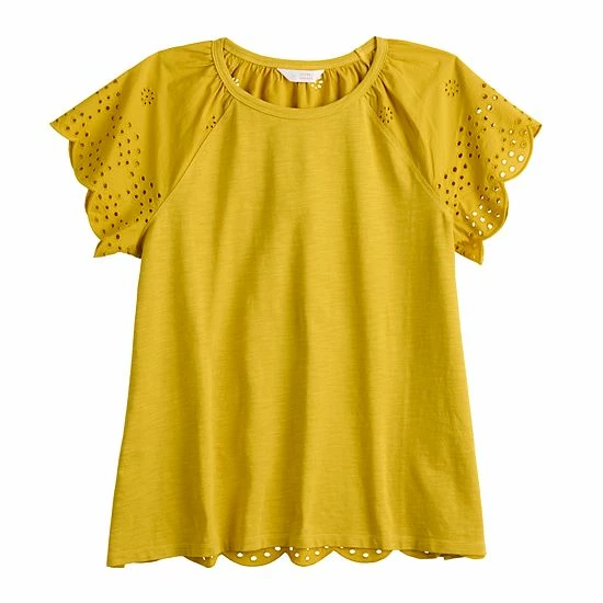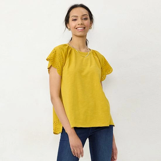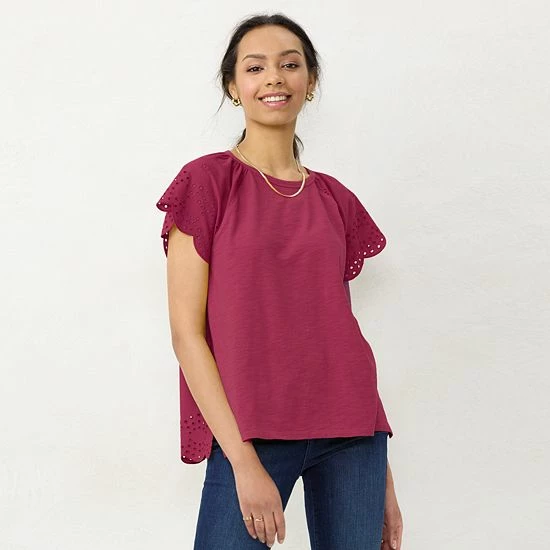 Turn on the charm in this women’s LC Lauren Conrad eyelet trim top.