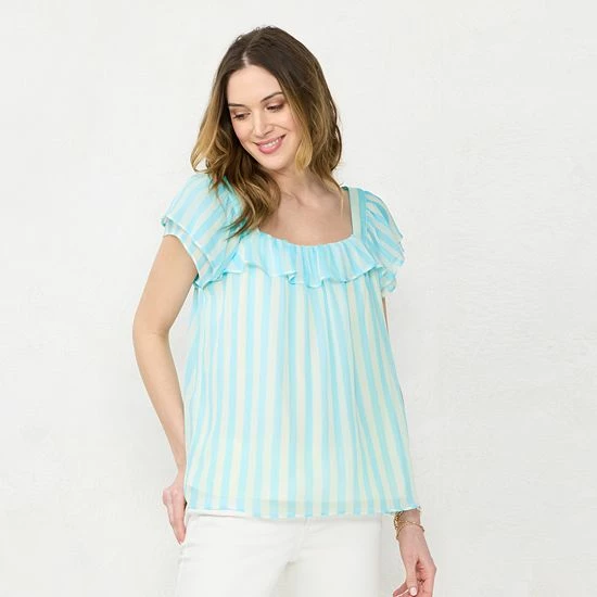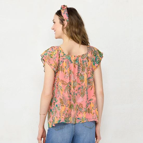 You’ll love this flowy women’s flutter sleeve peasant top from LC Lauren Conrad.