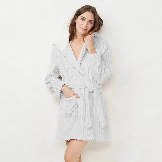 A super plush construction makes this women’s LC Lauren Conrad hooded wrap robe a lounging favorite.