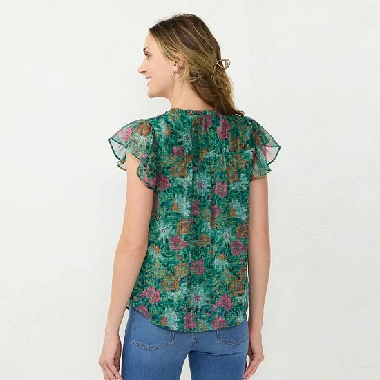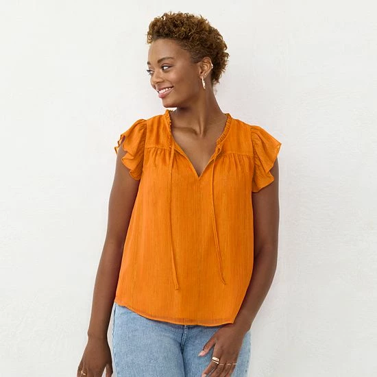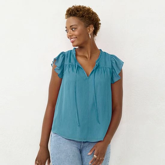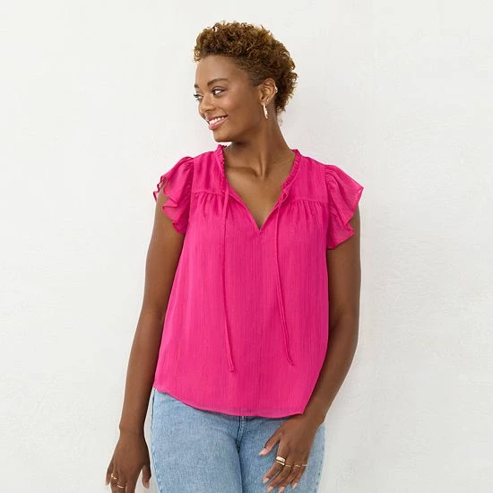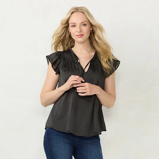 Ruffle details give this women’s LC Lauren Conrad V-neck top a chic, casual look.