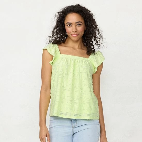 Show off your sweet summer style with this women’s ruffle sleeve cross-back top.