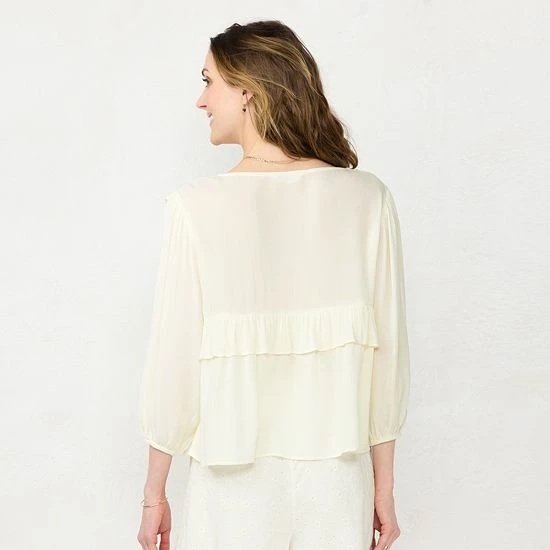 Embrace flowing style with this loose women’s smocked ruffle blouse from LC Lauren Conrad.