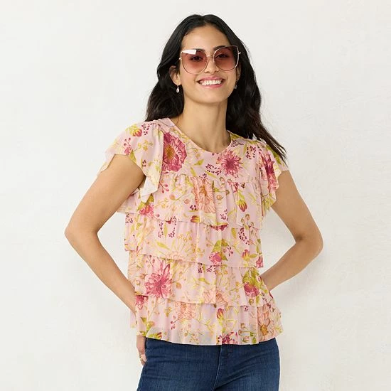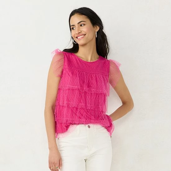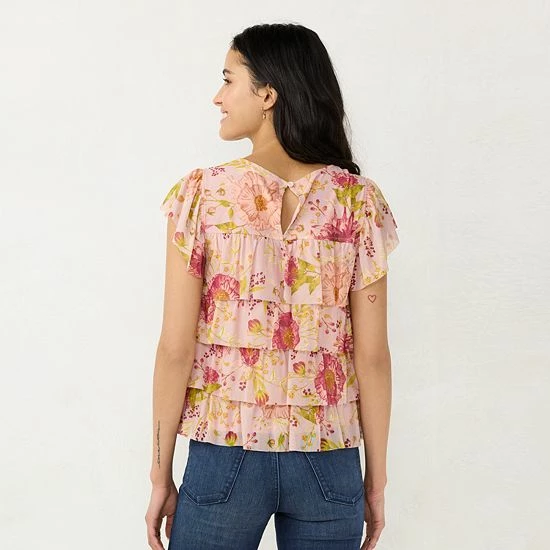 Tiered ruffle details add a sweet look to this women’s LC Lauren Conrad top.