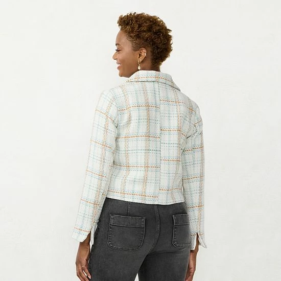 Add a preppy final layer to any outfit with this women’s LC Lauren Conrad tweed crop jacket.