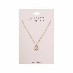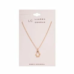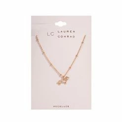 LC Lauren Conrad Gold Tone Simulated Crystal Eye Daschund Outline Nickel Free Pendant Necklace