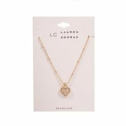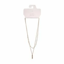 LC Lauren Conrad Gold Tone Two Row Simulated Crystal And Metal Ball Nickel Free Pendant Necklace