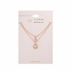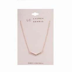 LC Lauren Conrad Rose Gold Tone Two Row Metal Ball Bead And Bar Long Nickel Free Pendant Necklace