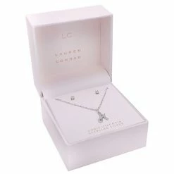LC Lauren Conrad Sterling Silver Cubic Zirconia Stud Earrings & Initial Pendant Necklace Set